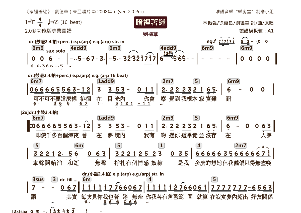 刘德华《暗里着迷》乐队总谱 - 2.0版多功能团谱