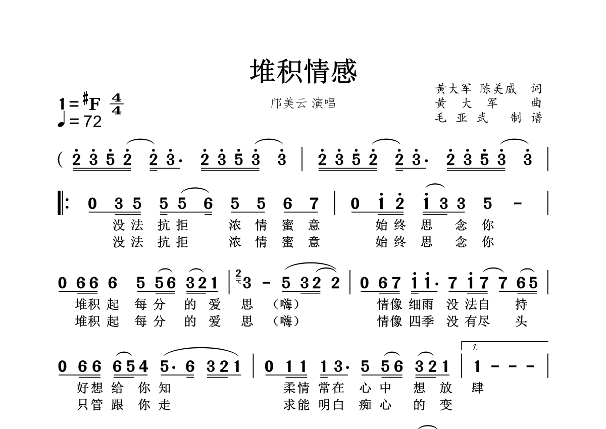 堆积情感简谱 - 邝美云演唱