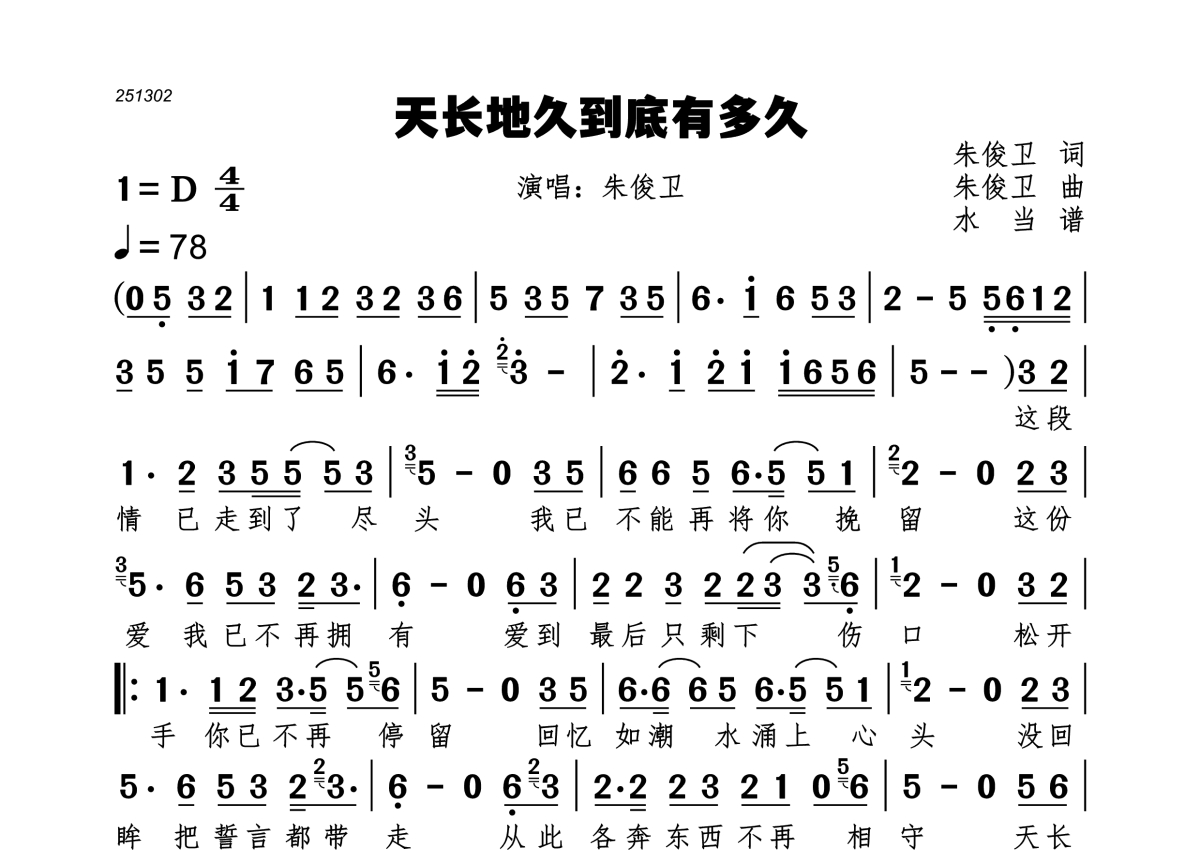 天长地久到底有多久简谱 - 朱俊卫演唱