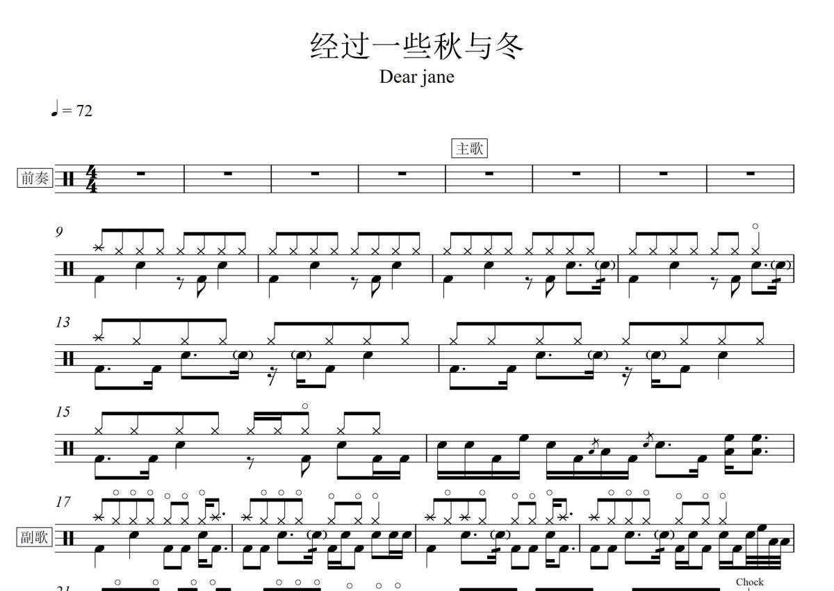 《经过一些秋与冬》是DearJane演唱的一首歌曲,拍号为4/4拍,歌曲速度为每分钟72拍,这份架子鼓谱共有两张高清图谱,图谱由 @音符喷血者 编配上传,图谱使用五线谱编配,使用这份经过一些秋与冬架子鼓谱,你将能够轻松地敲打出这首DearJane的经过一些秋与冬,快来尝试吧。