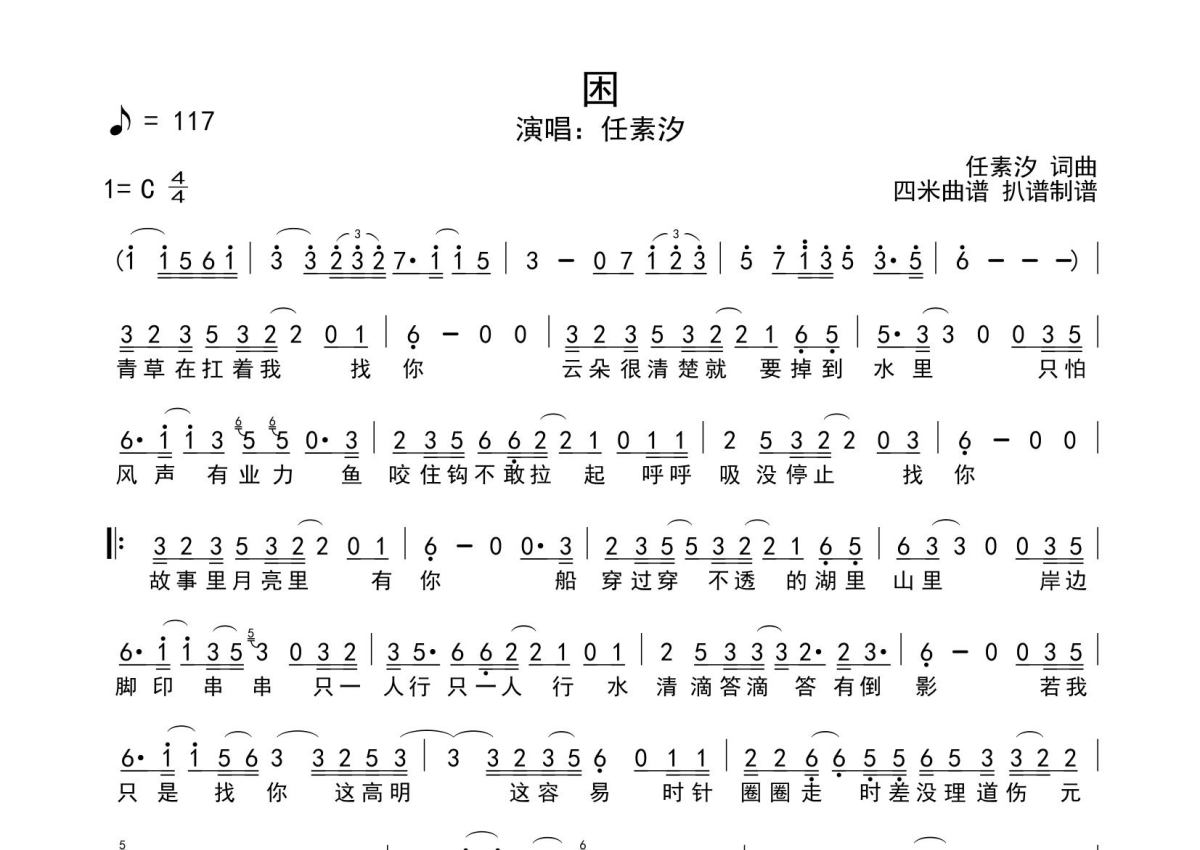 《困》是任素汐演唱的一首歌曲,这份简谱共有一张高清图谱,图谱由 @SRV7758521 编配上传。