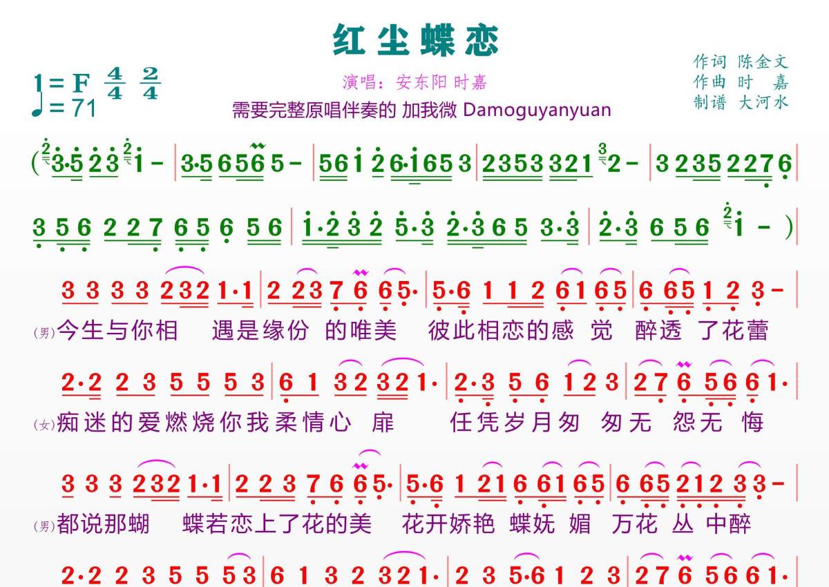红尘蝶恋简谱 - 安东阳 时嘉演唱