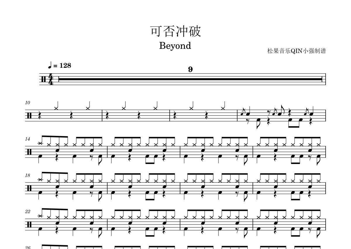 《可否冲破》是Beyond演唱的一首歌曲,拍号为4/4拍,这份架子鼓谱共有三张高清图谱,图谱由 @松果音乐QIN小强 编配上传,图谱使用五线谱编配,使用这份可否冲破架子鼓谱,你将能够轻松地敲打出这首Beyond的可否冲破,快来尝试吧。《可否冲破》是Beyond演唱的歌曲,由黄家驹、黄家强、黄贯中共同作曲,Beyond与梁邦彦合作编曲。