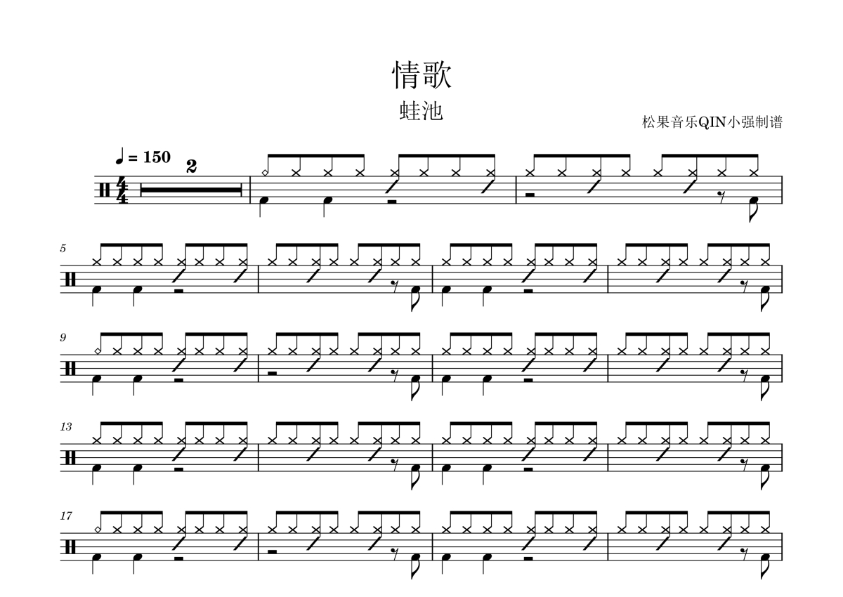 蛙池《情歌》架子鼓谱