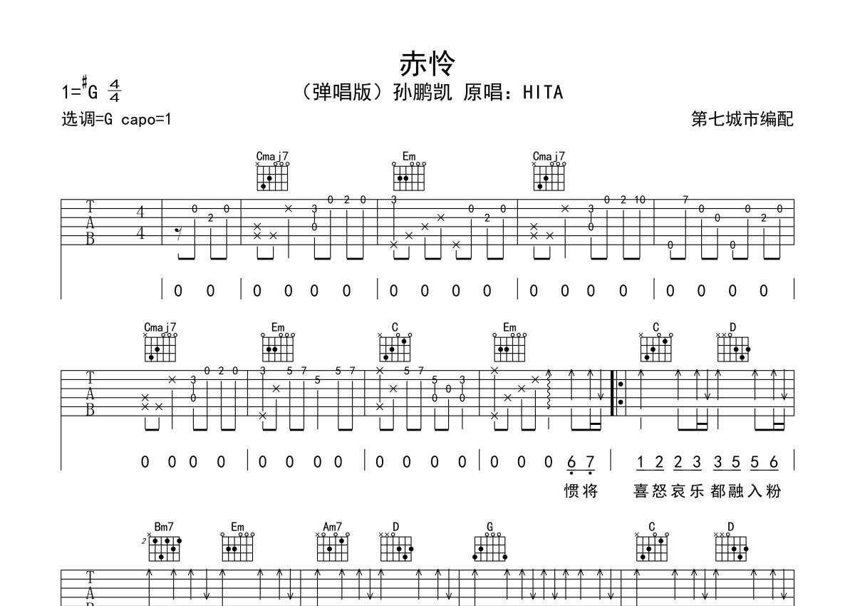 孙鹏凯《赤怜》吉他谱 - G调弹唱六线谱