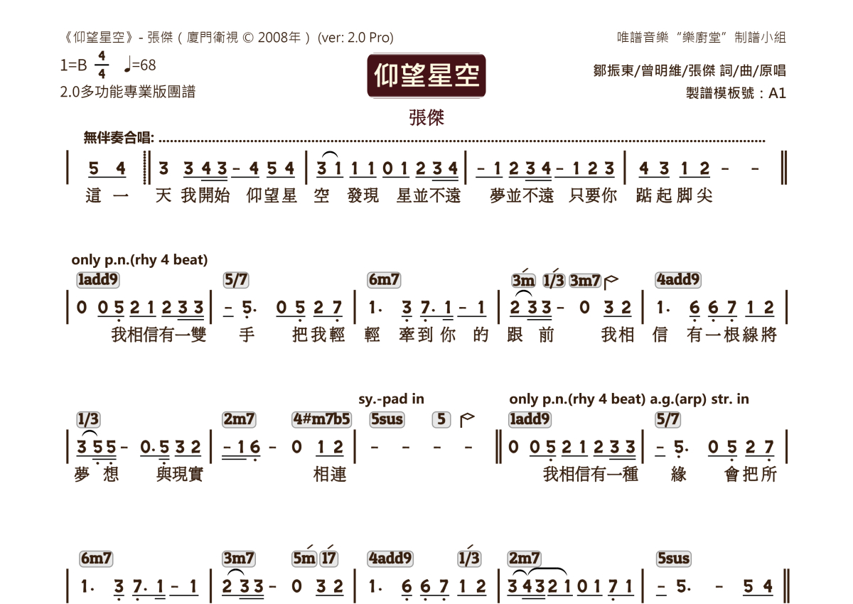 张杰《仰望星空》乐队总谱 - 2.0版多功能团谱