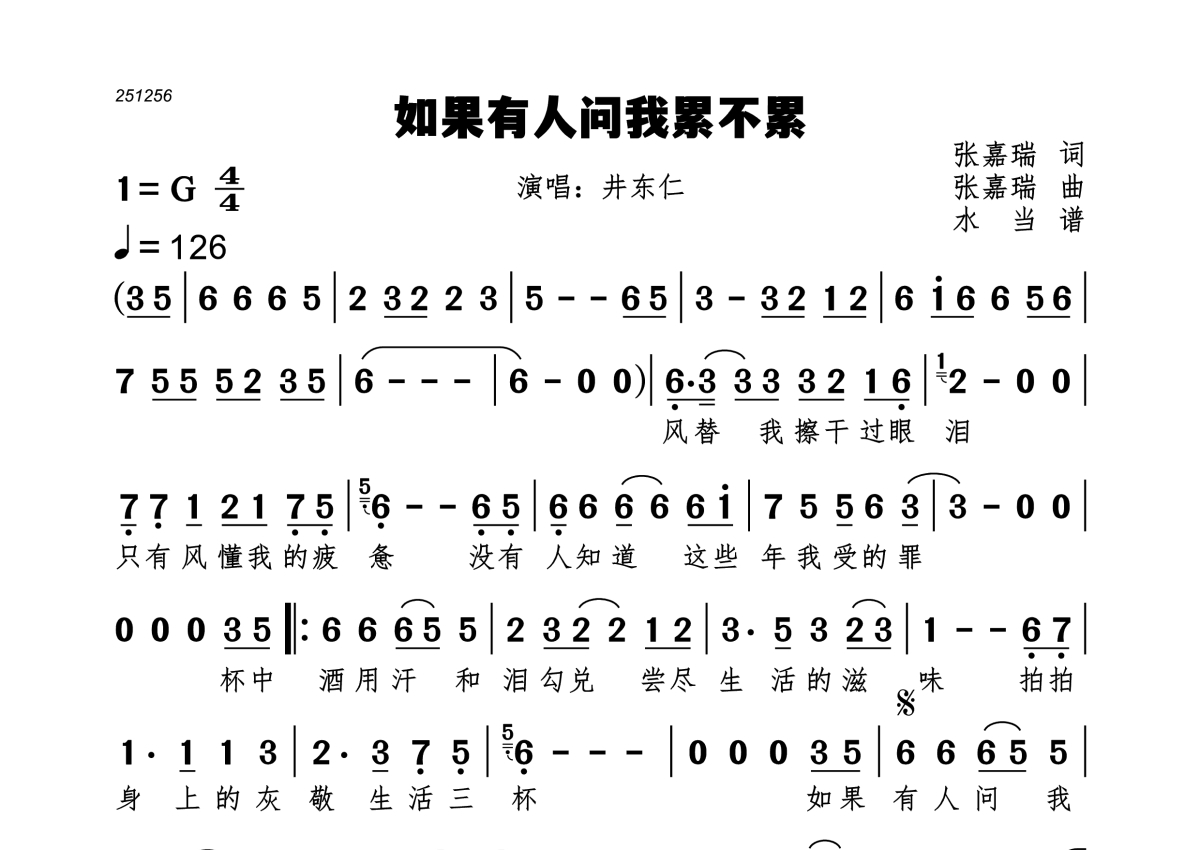 《如果有人问我累不累》是井东仁演唱的一首歌曲,这份简谱共有一张高清图谱,图谱由 @水当 编配上传。