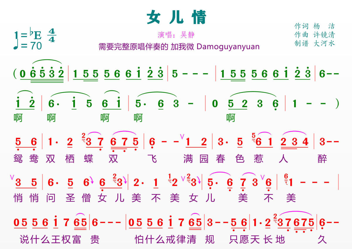 《女儿情》简谱 - 吴静