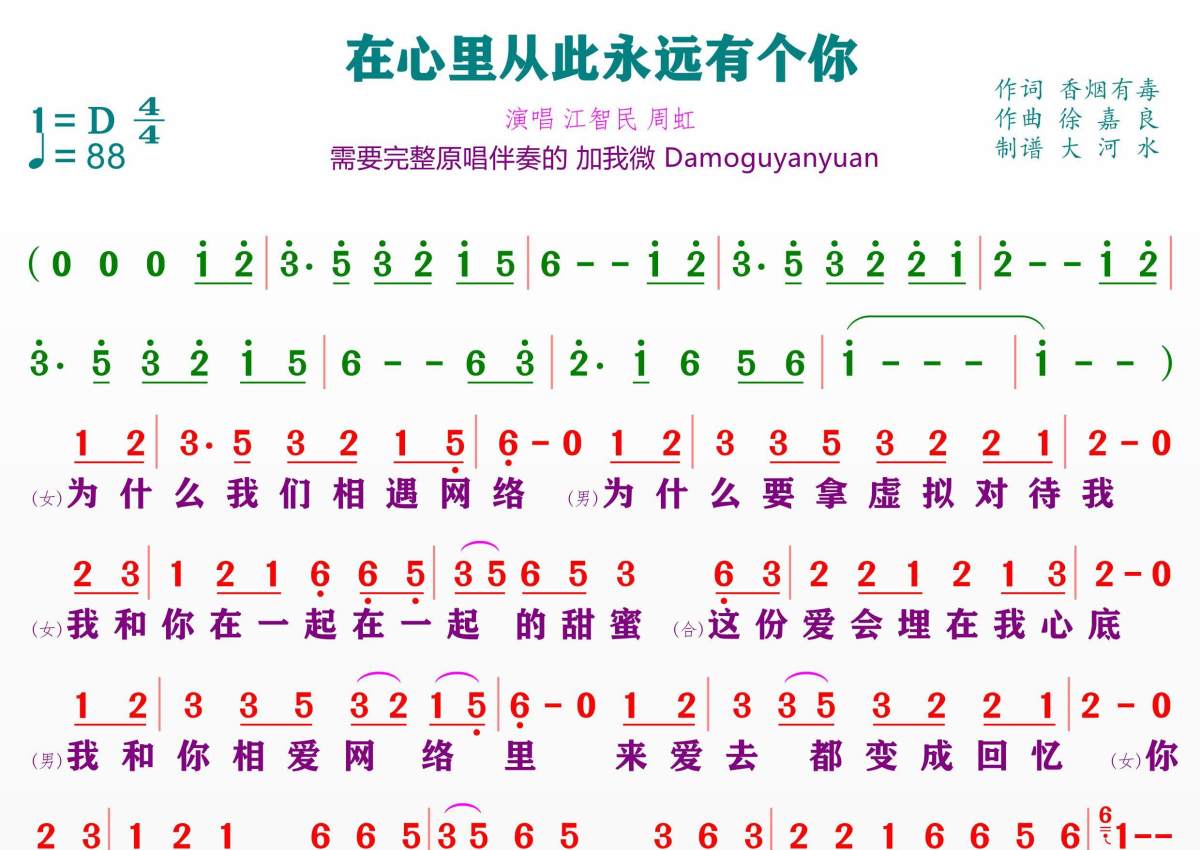 在心里从此永远有个你简谱 - 江智民 周虹演唱