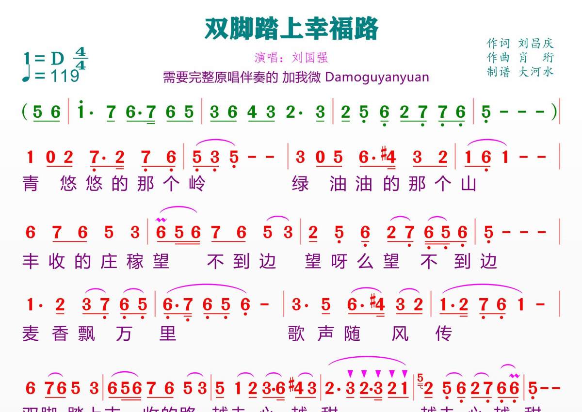 双脚踏上幸福路简谱 - 刘国强演唱