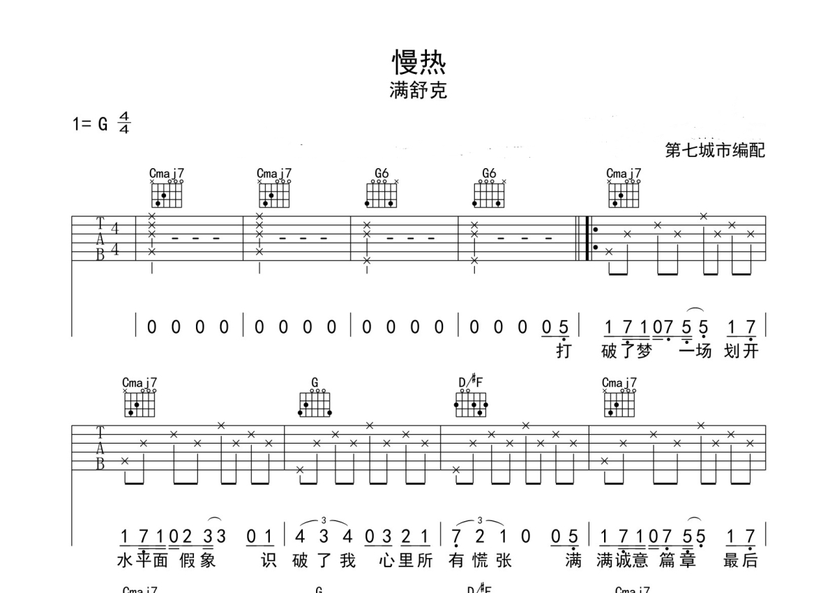 满舒克《慢热》吉他谱 - G调弹唱六线谱