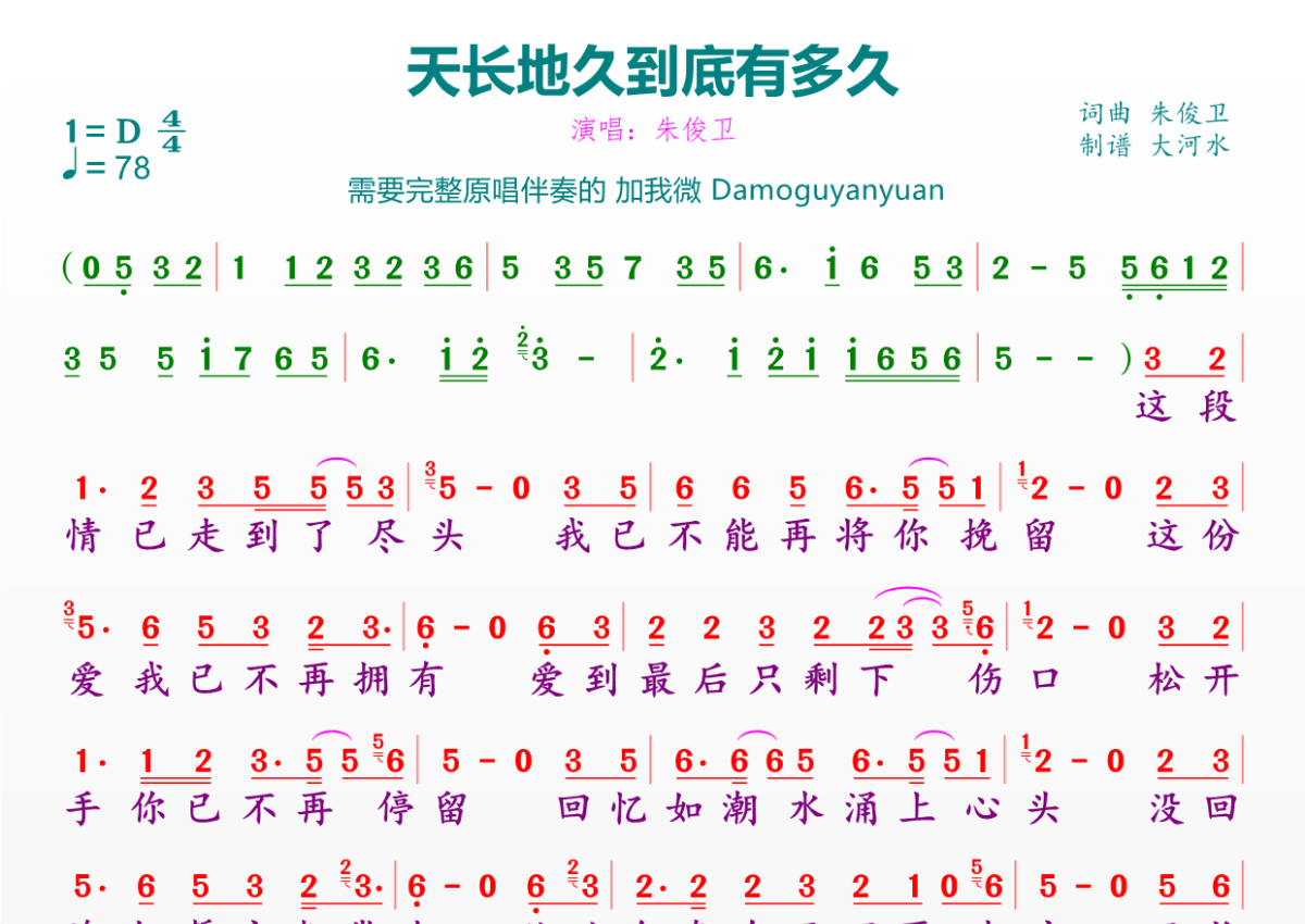 《天长地久到底有多久》简谱 - 朱俊卫