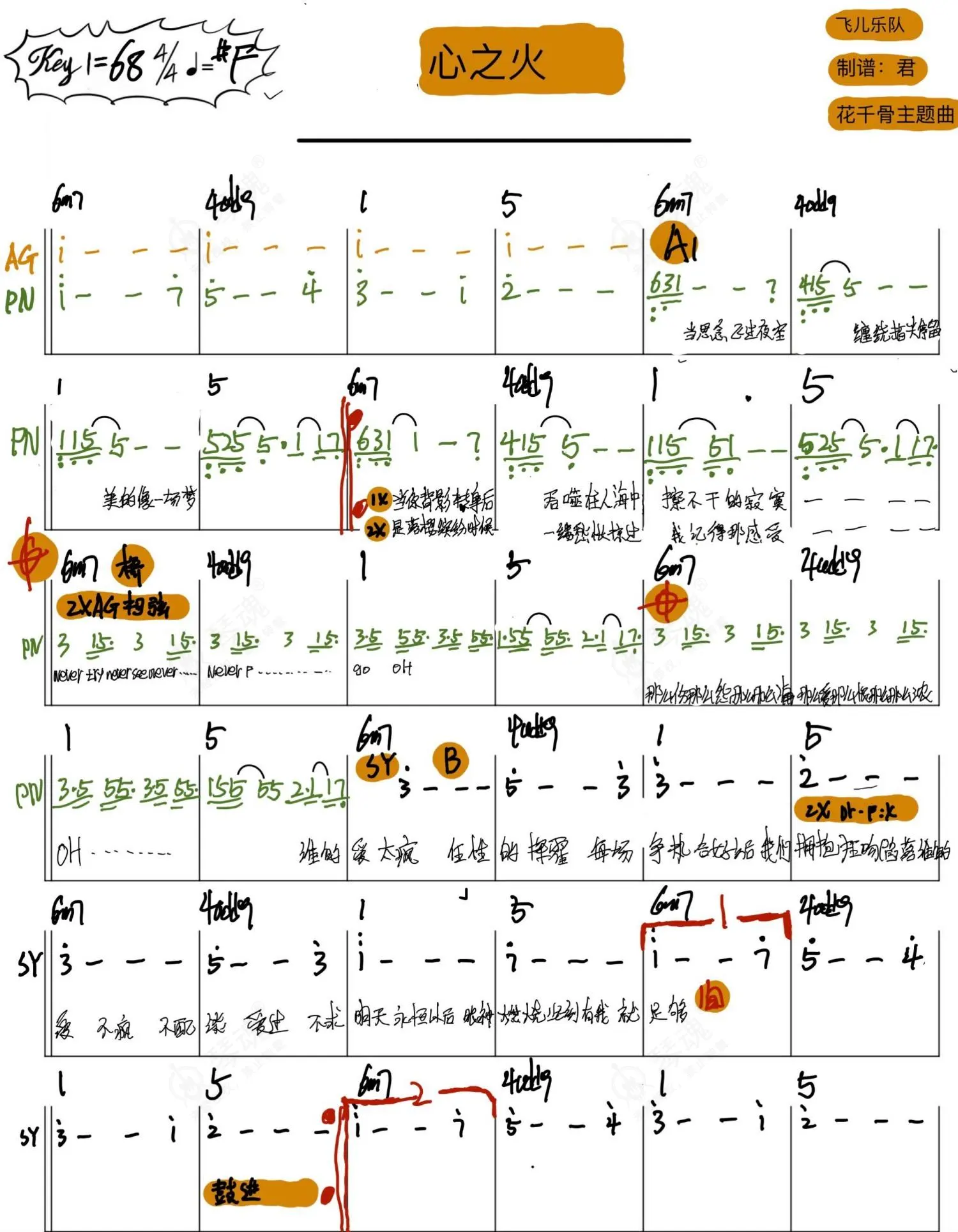 《心之火》是彭佳慧演唱的一首歌曲,这份乐队总谱共有两张高清图谱,图谱由 @微信用户 编配上传手写乐队弹唱功能谱。