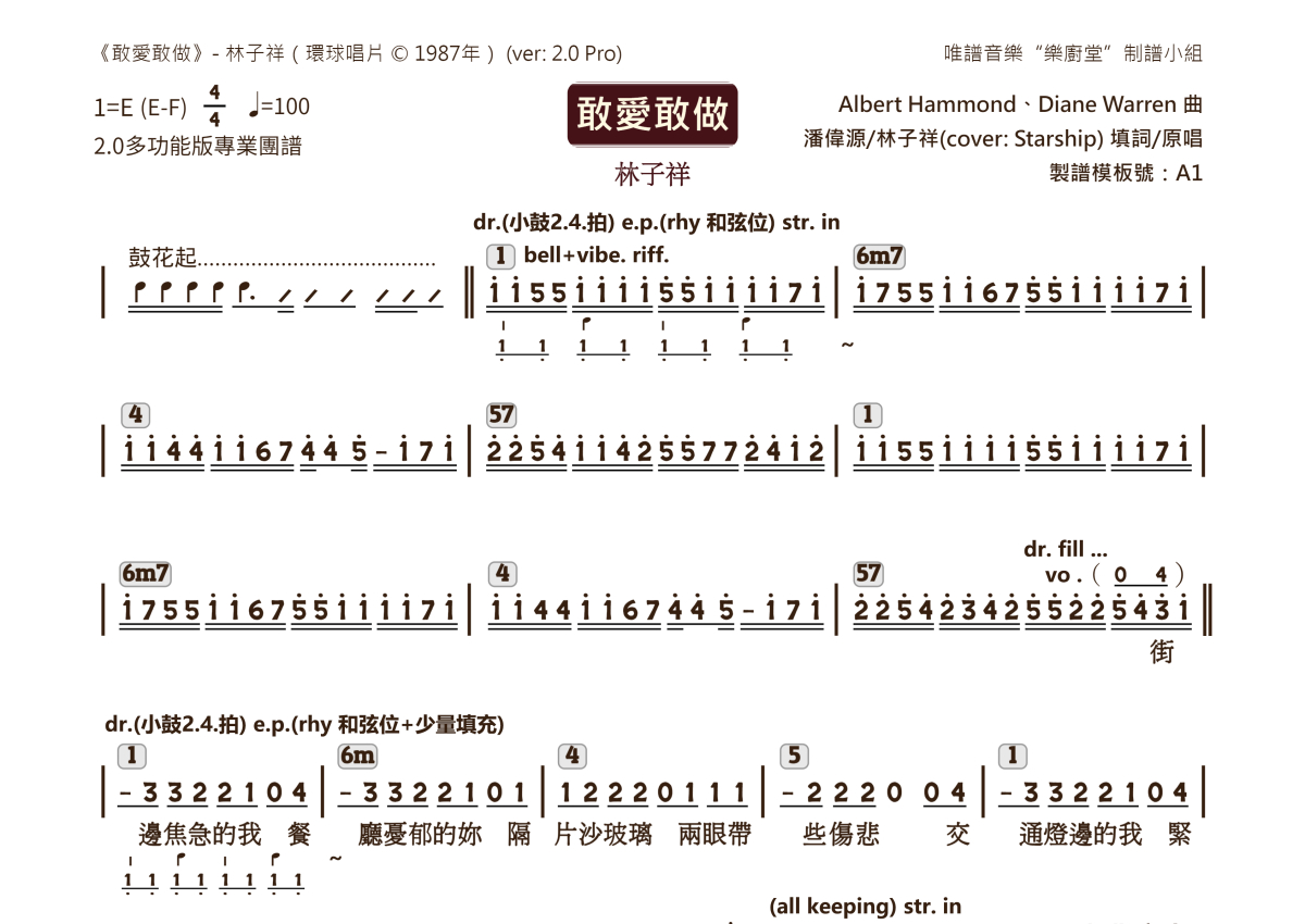 林子祥《敢爱敢做》乐队总谱 - 2.0版多功能团谱