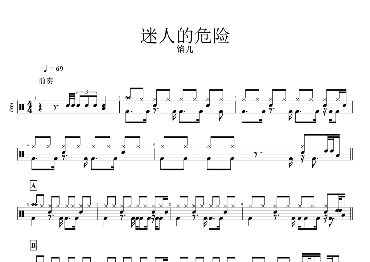 迷人的危险《馅儿&Neko》架子鼓谱