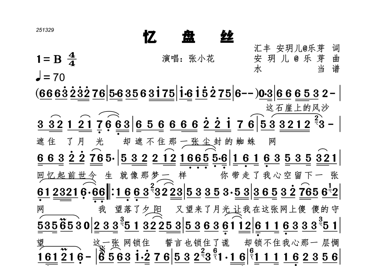 忆盘丝简谱 - 张小花演唱