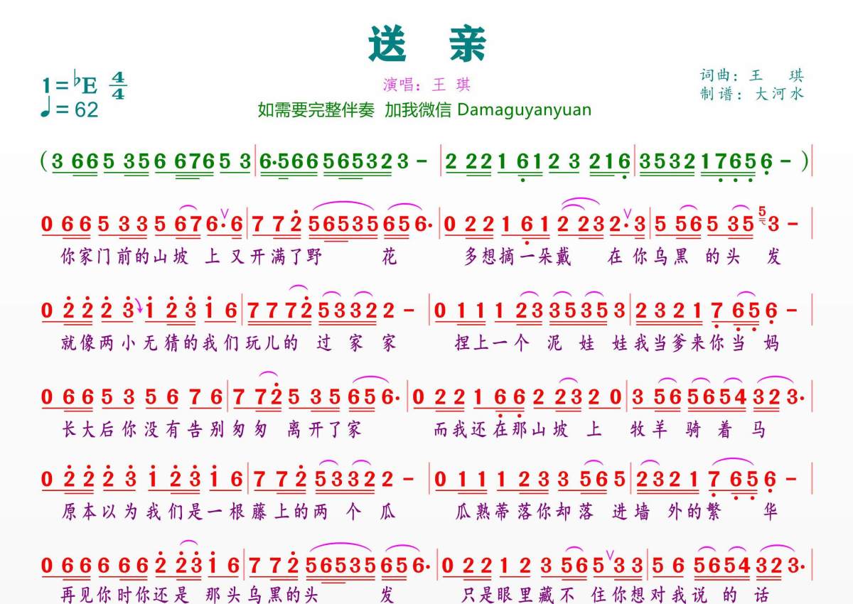 送亲简谱 - 王琪演唱