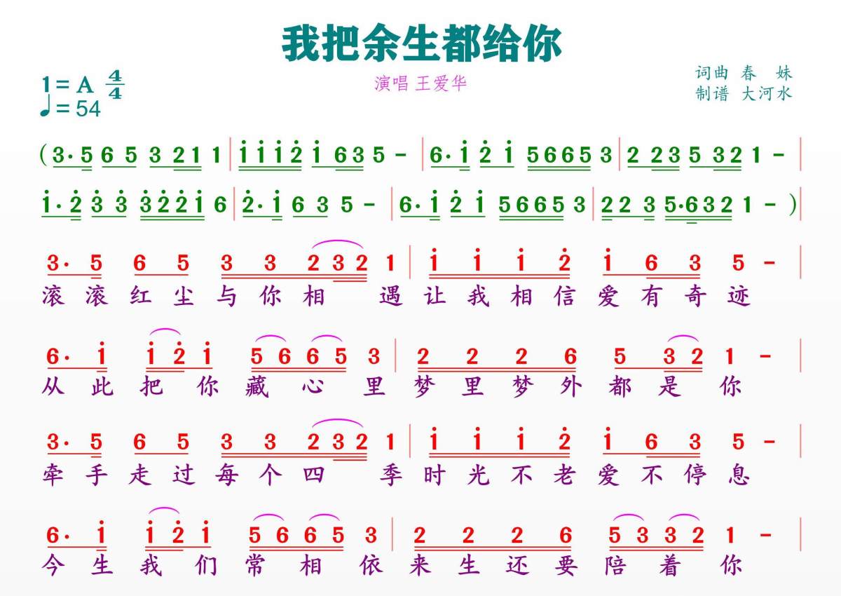 我把余生都给你简谱 - 王爱华演唱