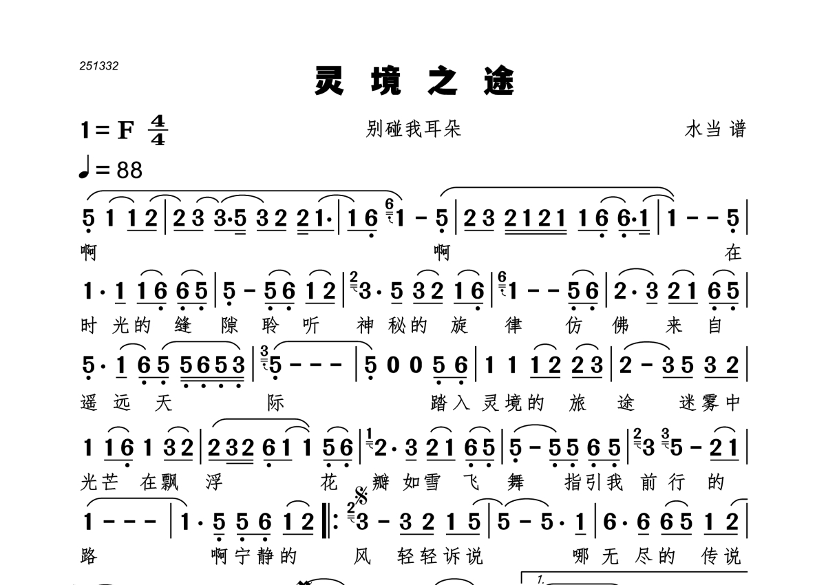 《灵境之途》是别碰我耳朵演唱的一首歌曲,拍号为4/4拍,歌曲速度为每分钟88拍,这份简谱共有一张高清图谱,图谱由 @水当 编配上传。