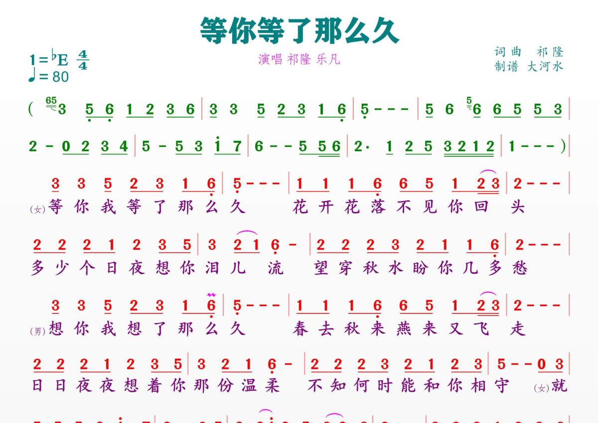 等你等了那么久简谱 - 祁隆 乐凡演唱