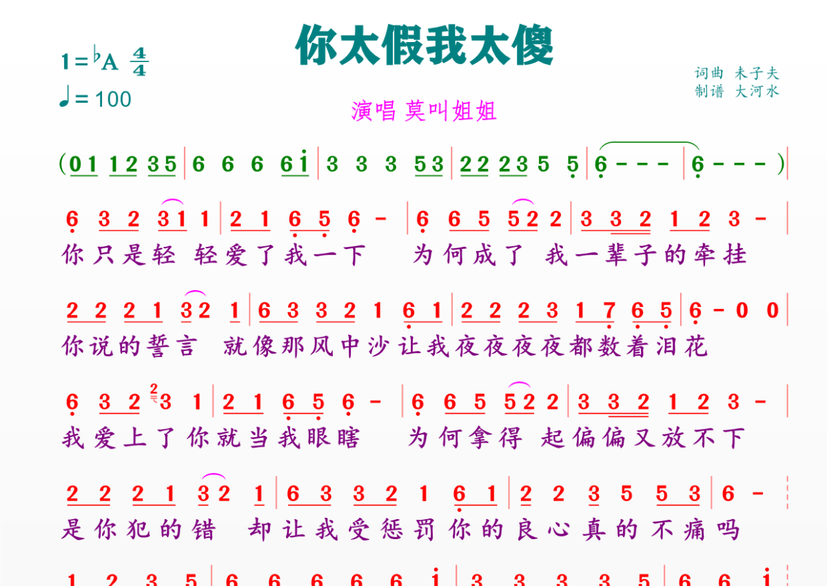 《你太假我太傻》简谱 - 莫叫姐姐