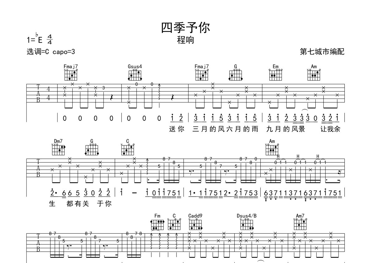 程响《四季予你》吉他谱 - C调弹唱六线谱