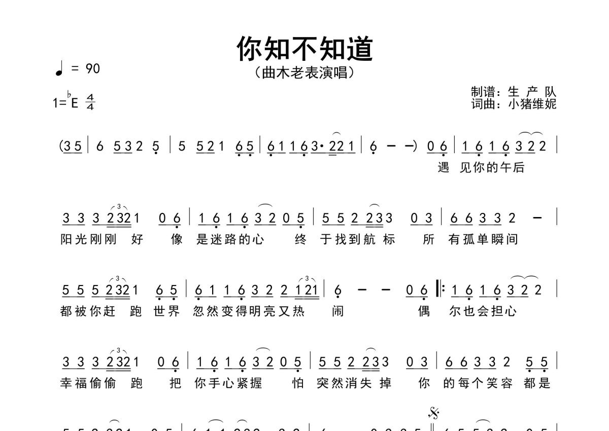 《你知不知道》是曲木老表演唱的一首歌曲,原版简谱,拍号为4/4拍,歌曲速度为每分钟90拍,这份简谱共有一张高清图谱,图谱由 @生产队 编配上传曲木老表演唱的歌曲《你知不知道》原版简谱,含精准的前奏、间奏solo编配,精编完美版,优质推荐!。