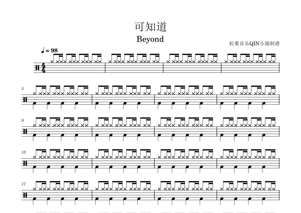 《可知道》是Beyond演唱的一首歌曲,拍号为4/4拍,这份架子鼓谱共有两张高清图谱,图谱由 @松果音乐QIN小强 编配上传,图谱使用五线谱编配,使用这份可知道架子鼓谱,你将能够轻松地敲打出这首Beyond的可知道,快来尝试吧。《可知道》是中国香港摇滚乐队Beyond演唱的粤语歌曲,由黄家驹作词、作曲,收录于乐队1990年9月1日发行的专辑《命运派对》中。