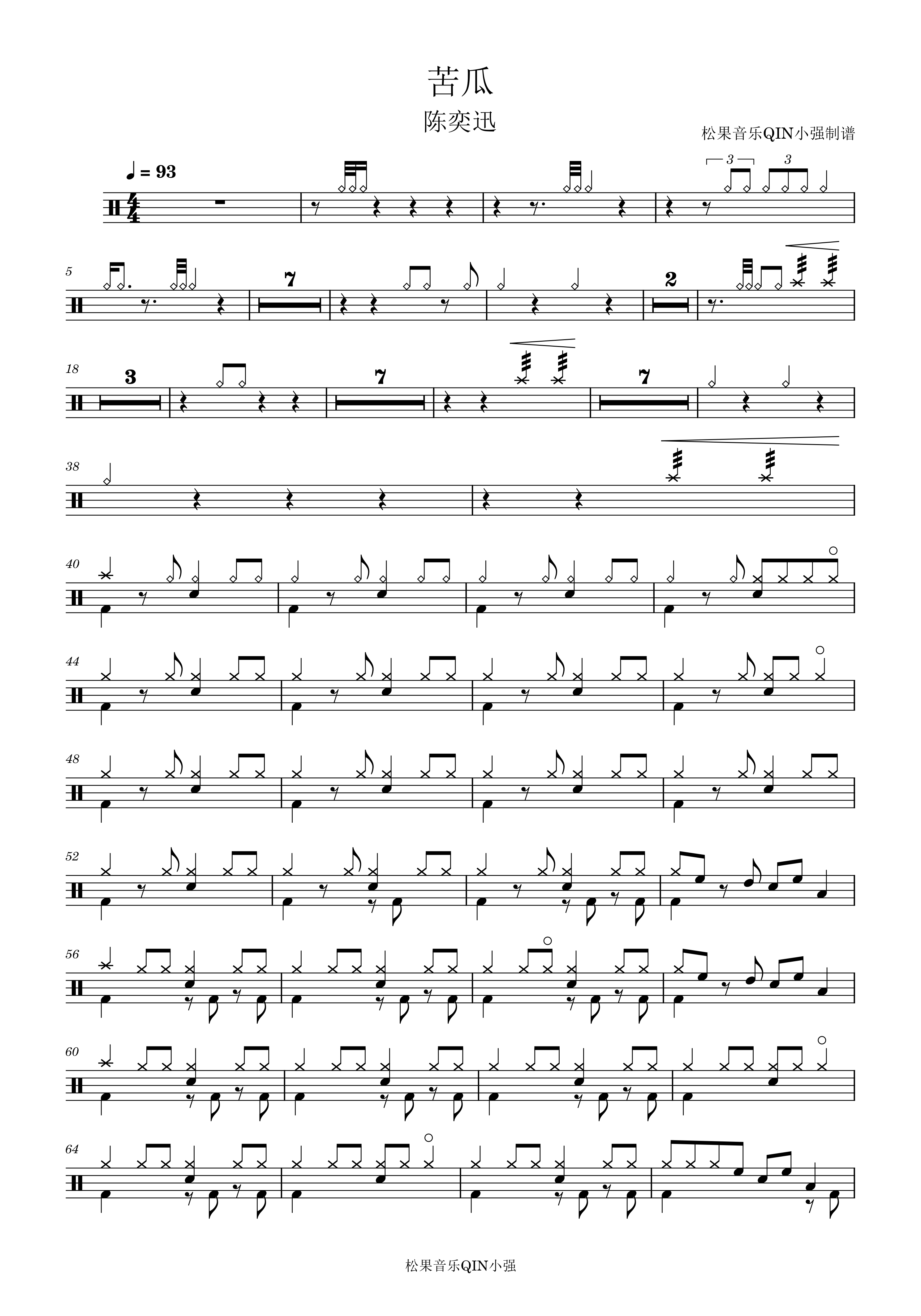 《苦瓜》是陈奕迅演唱的一首歌曲,拍号为4/4拍,这份架子鼓谱共有两张高清图谱,图谱由 @松果音乐QIN小强 编配上传,图谱使用五线谱编配,使用这份苦瓜架子鼓谱,你将能够轻松地敲打出这首陈奕迅的苦瓜,快来尝试吧。《苦瓜》是陈奕迅演唱的粤语流行歌曲,由黄伟文作词,章霈迎作曲,收录于陈奕迅2011年2月22日发行的EP《Stranger Under My Skin》中。