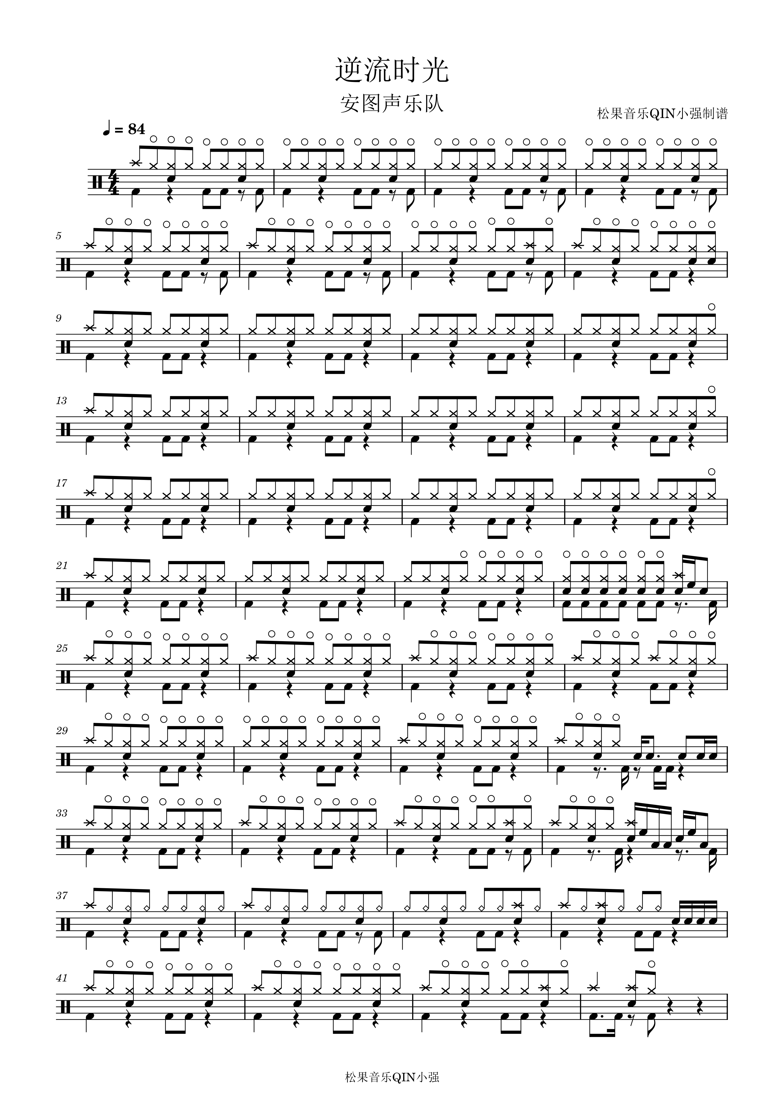 《逆流时光》是安图声乐队演唱的一首歌曲,拍号为4/4拍,这份架子鼓谱共有两张高清图谱,图谱由 @松果音乐QIN小强 编配上传,图谱使用五线谱编配,使用这份逆流时光架子鼓谱,你将能够轻松地敲打出这首安图声乐队的逆流时光,快来尝试吧。《逆流时光》是由安图声乐队演唱的摇滚风格单曲,收录于专辑《ANTU SOUND ROCK》,于2014年1月1日正式发行。