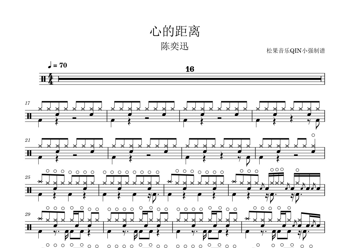 心的距离架子鼓谱 - 陈奕迅演唱