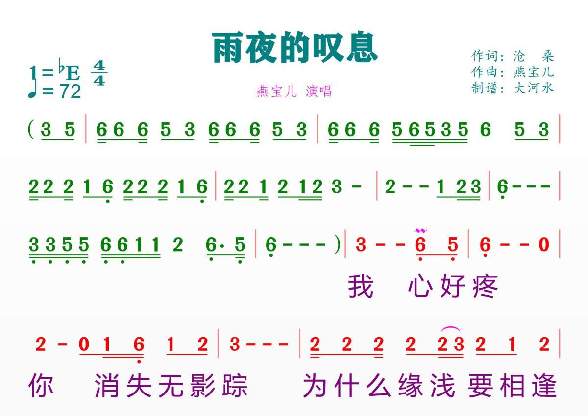 雨夜的叹息简谱 - 燕宝儿演唱