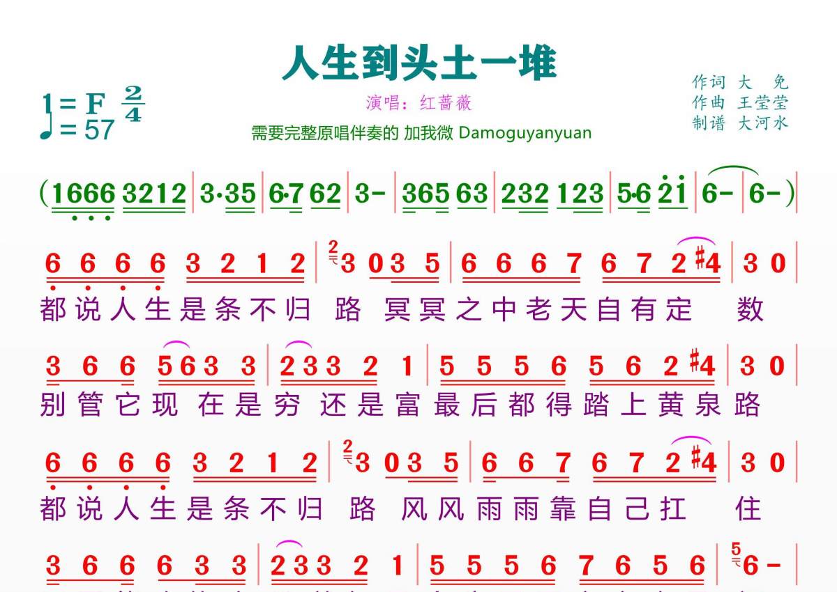 人生到头土一堆简谱 - 红蔷薇演唱