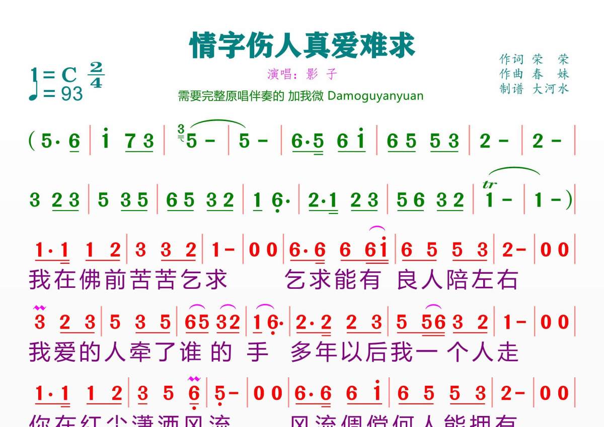 《情字伤人真爱难求》是影子演唱的一首歌曲,拍号为2/4拍,歌曲速度为每分钟93拍,这份简谱共有一张高清图谱,图谱由 @临海雪原 编配上传。