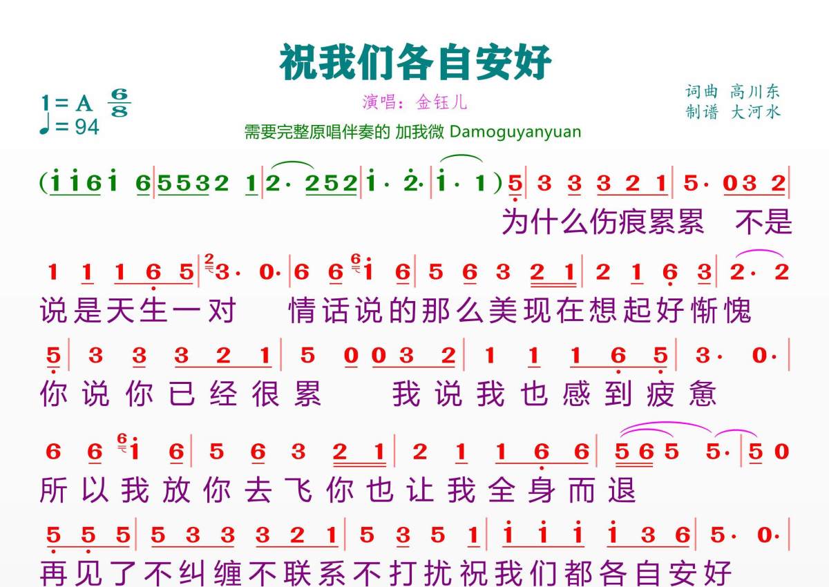 《祝我们各自安好》简谱 - 金钰儿