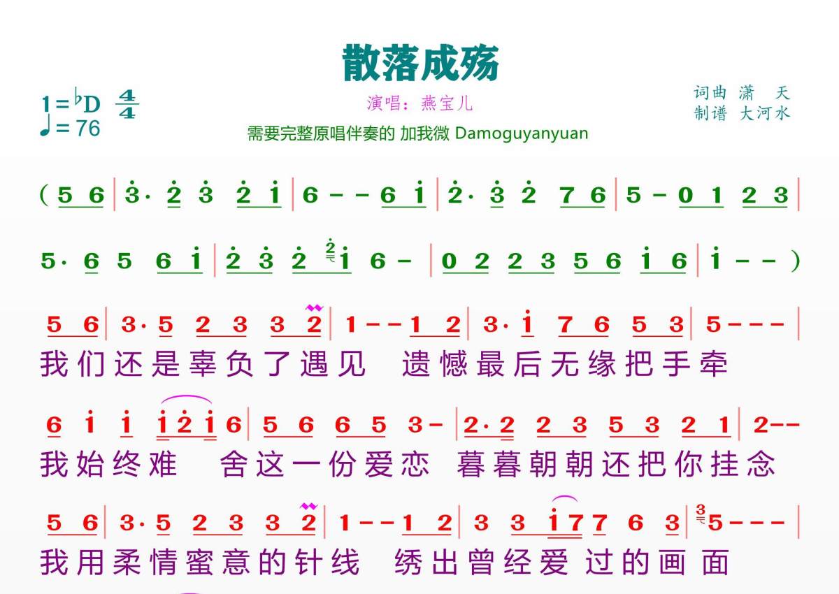 散落成殇简谱 - 燕宝儿演唱