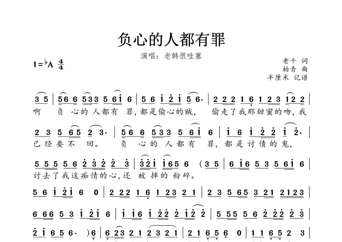 负心的人都有罪简谱 - 老韩很哇塞演唱