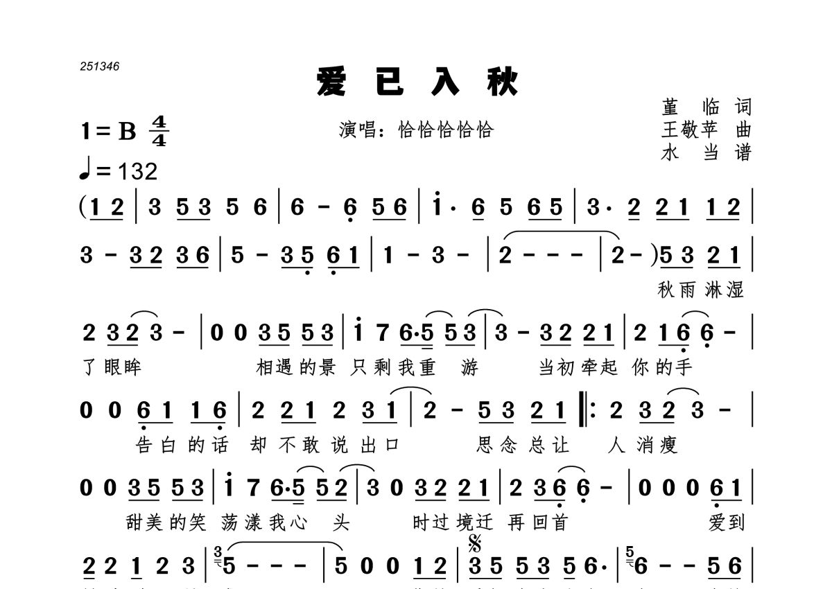 爱已入秋简谱 - 恰恰恰恰恰演唱