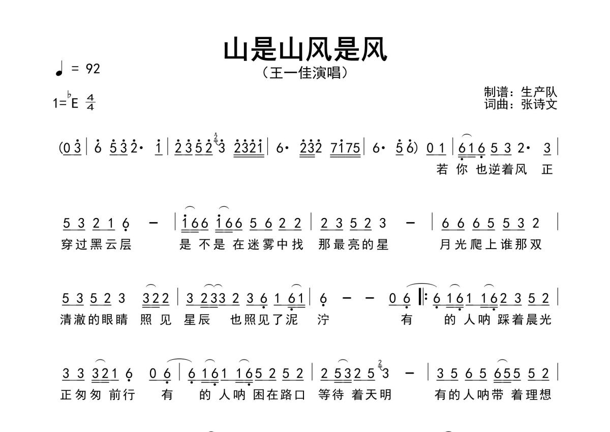 《山是山风是风》是王一佳演唱的一首歌曲,原版简谱,拍号为4/4拍,歌曲速度为每分钟92拍,这份简谱共有一张高清图谱,图谱由 @生产队 编配上传王一佳演唱的歌曲《山是山风是风》原版简谱,含精准的前奏、间奏、尾奏solo编配,精编完美版,优质推荐!。