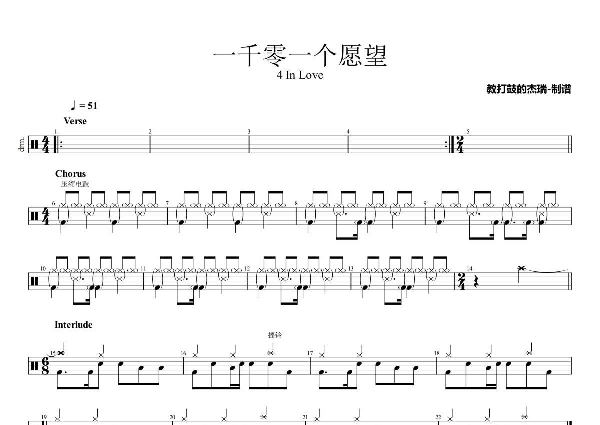 4 In Love《一千零一个愿望》架子鼓谱