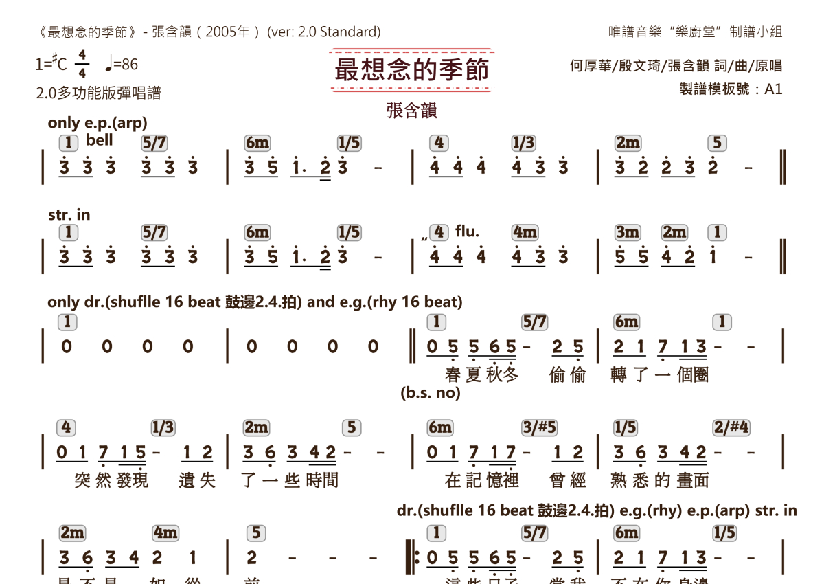 张含韵《最想念的季节》乐队总谱 - 2.0版多功能弹唱谱