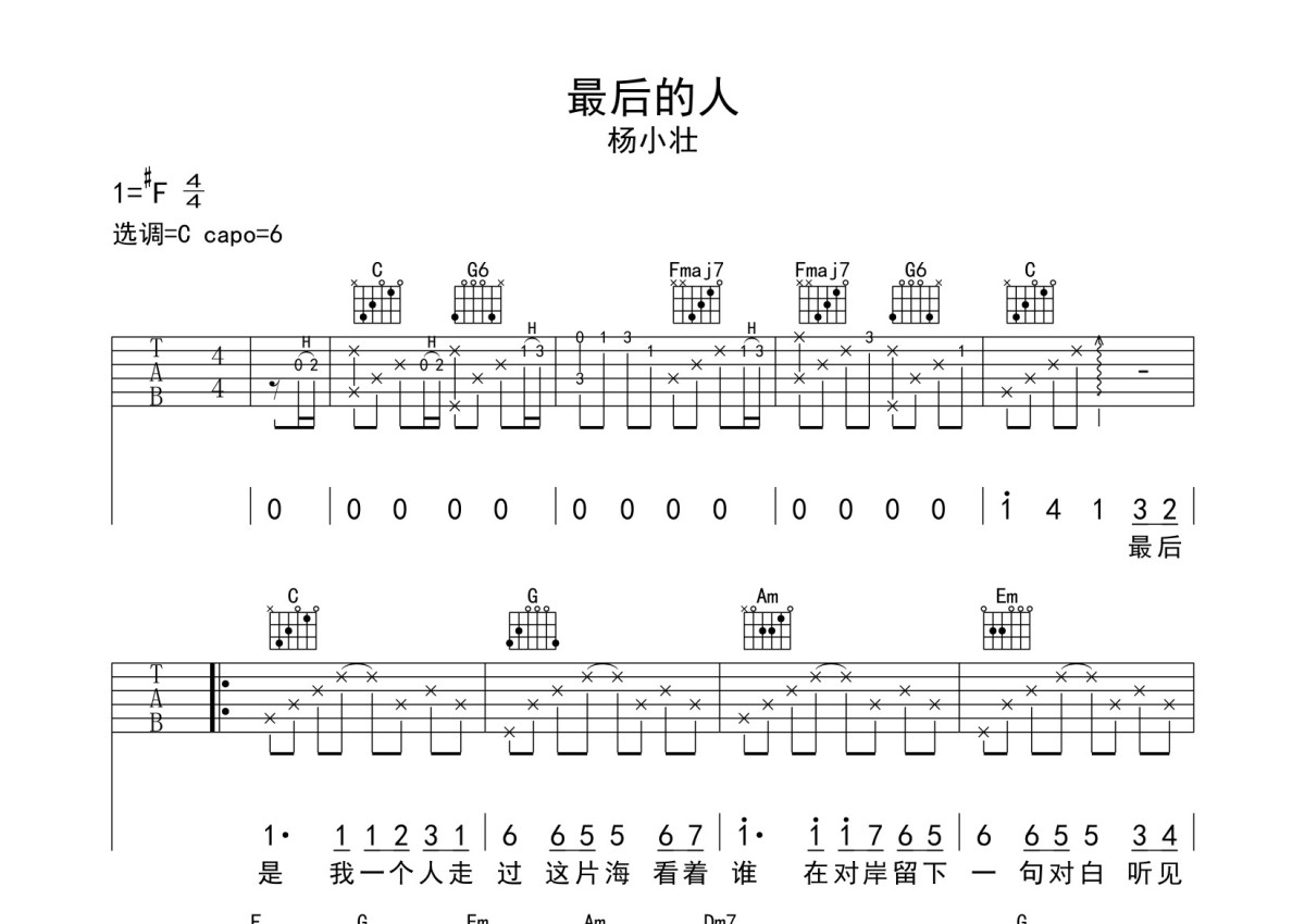 杨小壮《最后的人》吉他谱 - C调弹唱六线谱