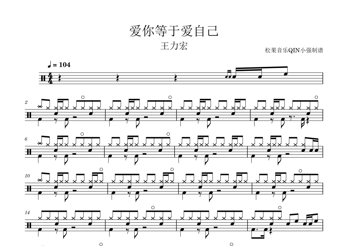 爱你等于爱自己架子鼓谱 - 王力宏演唱