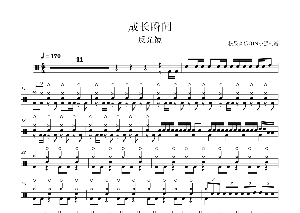 反光镜乐队《成长瞬间》架子鼓谱