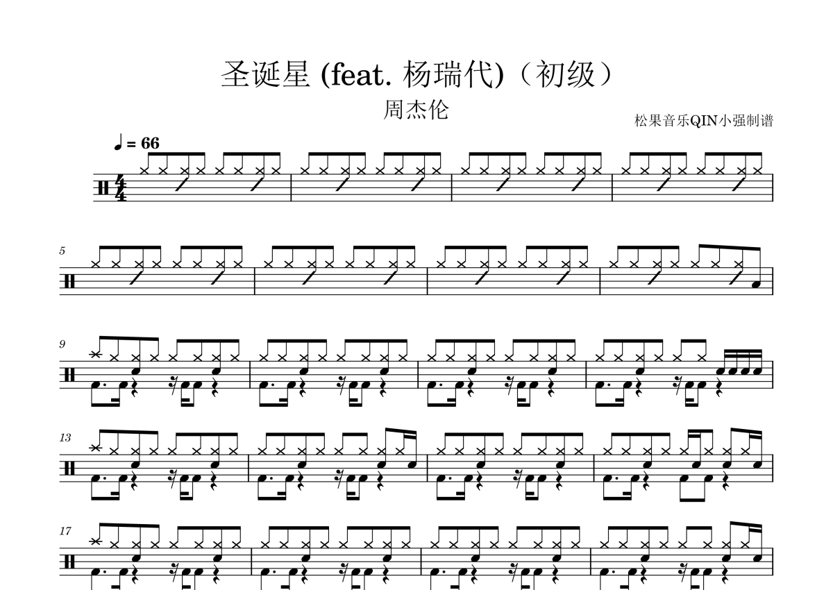 周杰伦《圣诞星(初级)》架子鼓谱