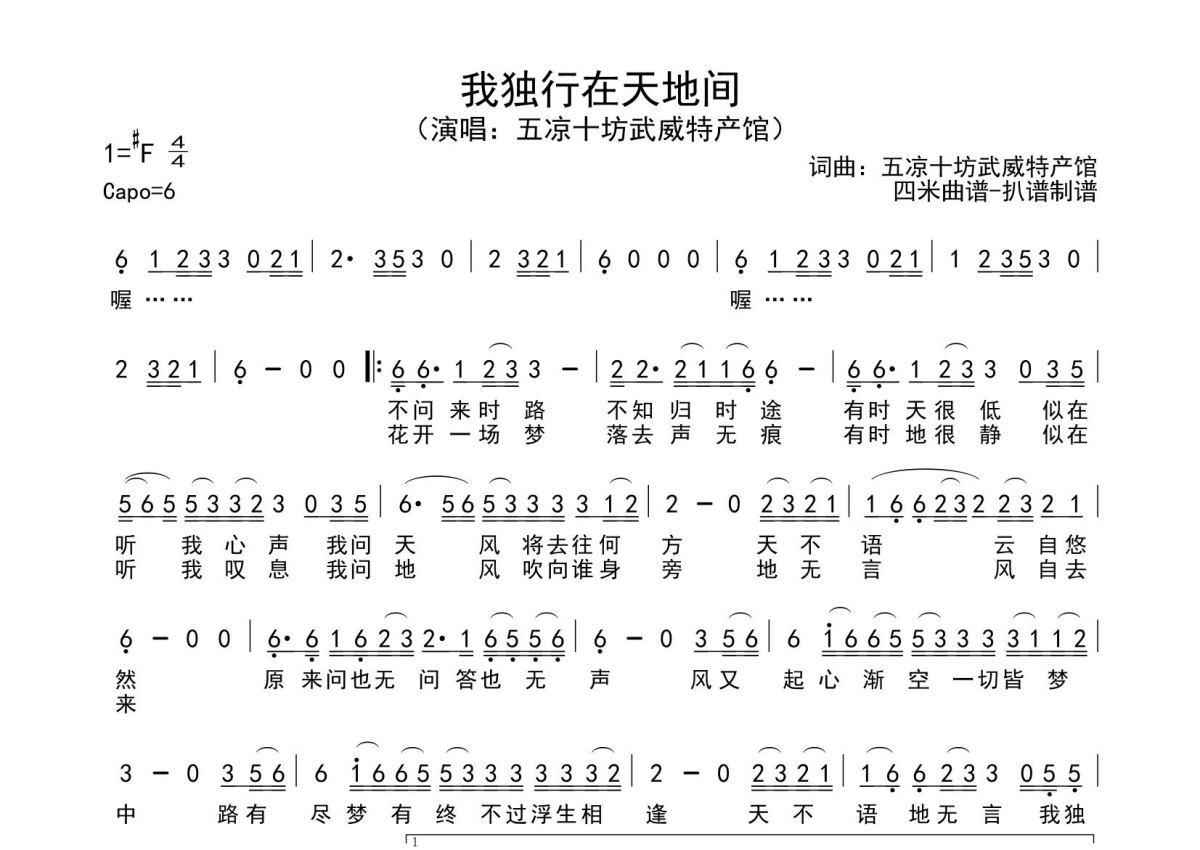 我独行在天地间简谱 - 五凉十坊武威特产馆演唱