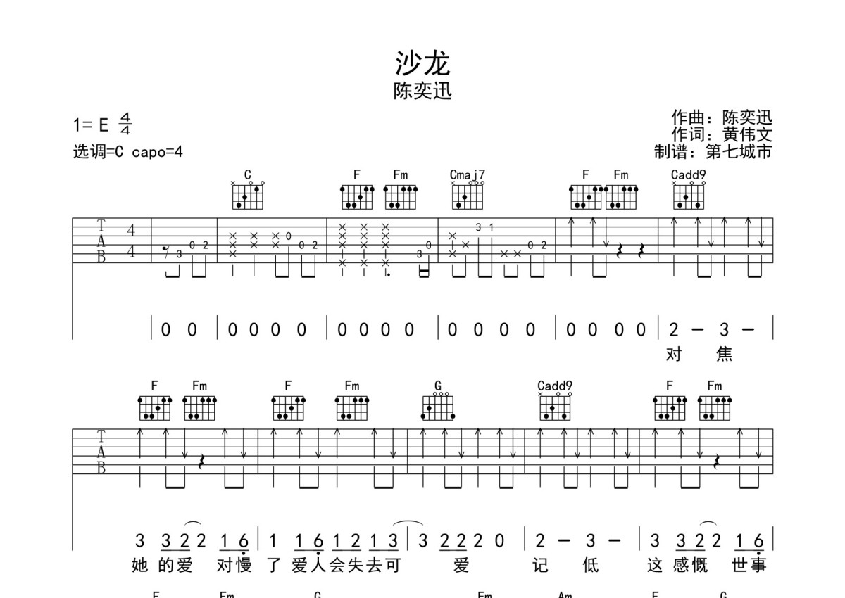 陈奕迅《沙龙》吉他谱 - C调弹唱六线谱