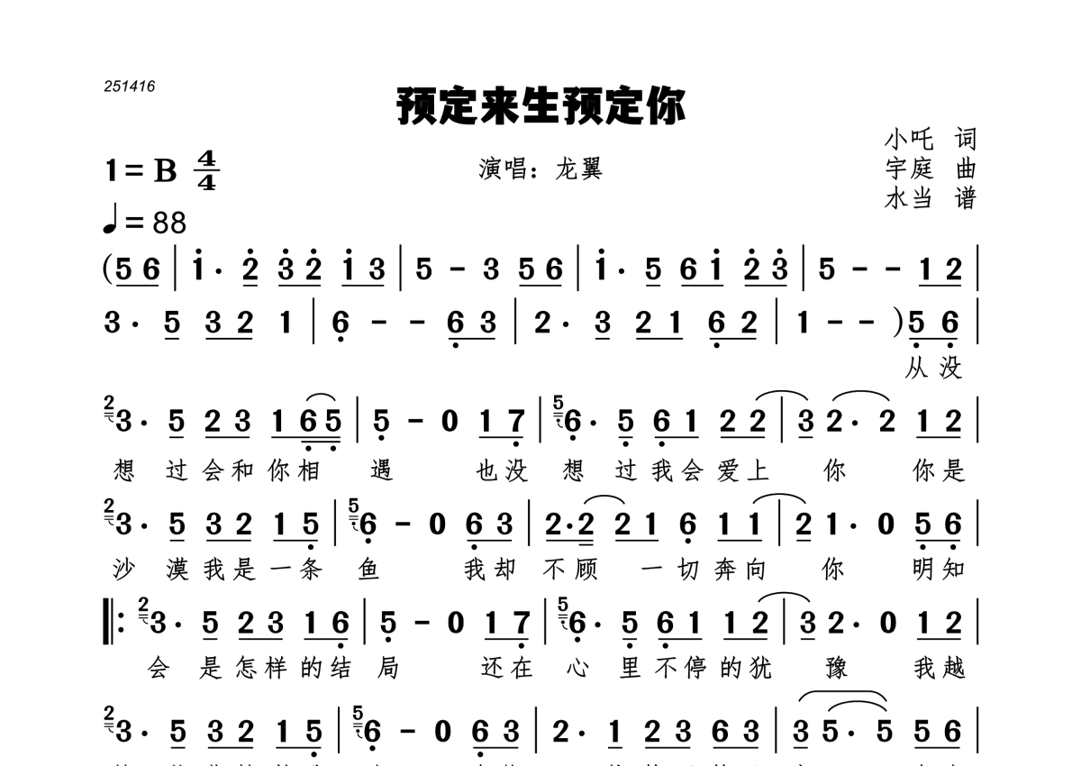 预定来生预定你简谱 - 龙翼演唱