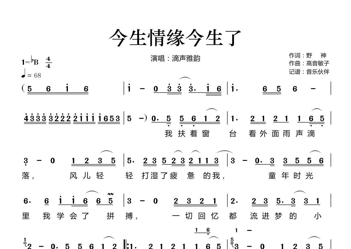 今生情缘今生了简谱 - 滴声雅韵演唱
