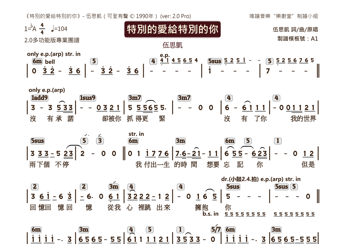 伍思凯《特别的爱给特别的你》乐队总谱 - 2.0版多功能团谱